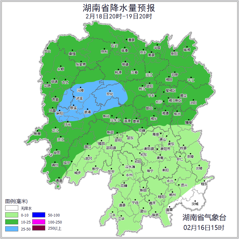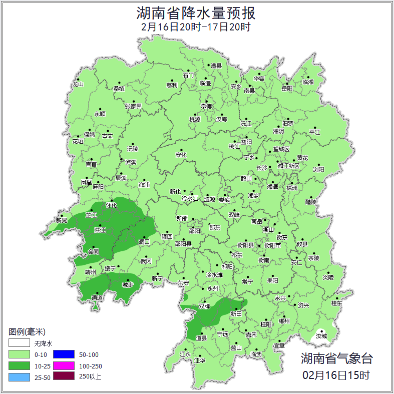 从全省范围来看,预计16日晚上开始省内以阴雨天气为主,18日晚到19日白天湘中以北降水加大,局地有大雨。其中,16日晚上到17日白天,全省阴天有小雨,其中怀化中南部、邵阳西部和永州中部局地中雨;17日晚上到18日白天,湘中以南阴天有小雨,其他地区阴天间多云,大部分地区有小雨;18日晚上到19日白天,湘南阴天间多云,大部分地区有小雨,其他地区阴天有中雨,其中湘西州南部、怀化中北部、益阳西部、娄底西部和常德南部局地大雨。