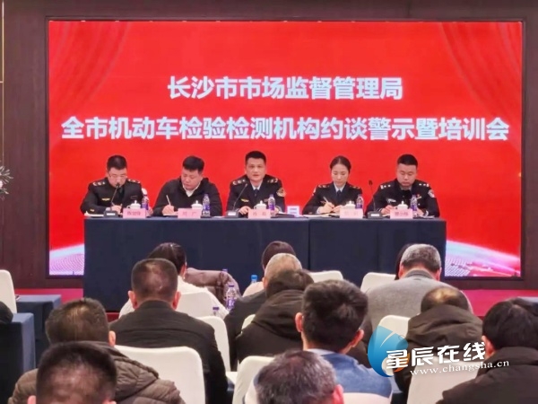 星辰在线2月27日讯(星辰全媒体记者 贺亚玲 胡宇薇)2月26日,长沙市市场监管局联合市生态环境局、市公安局交警支队召开全市机动车检验检测机构约谈警示暨培训会,全市88家车检机构代表参会。会议通报了2024年省、市、区三级市场监管部门对车检机构开展“双随机、一公开”监督检查情况,并提出了具体要求。