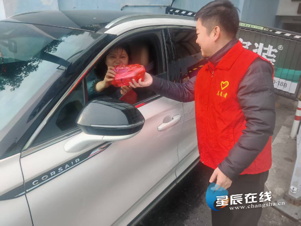 (节日清晨,社区、物业公司工作人员给小区女同胞送早餐。)