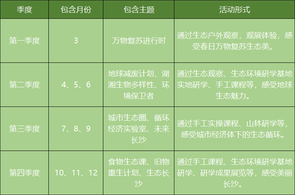 为贯彻落实生态环境部等九部门共同制定并发布的《关于深入开展“美丽中国,我是行动者”系列活动工作方案》,长沙市生态环境局将携手湖南图书馆、生态环境志愿服务组织、长沙环保设施免费开放单位及教育基地等,在“碳循长沙”平台上线丰富多彩的“寻长沙 践环保”系列生态主题研学活动,通过寓教于乐的方式,实地体验游览、生态知识讲解、亲手实操等形式,将生态文明教育和生态环保社会综合实践相结合,广泛动员全社会积极行动起来,形成人人、事事、时时、处处崇尚生态文明的社会氛围。