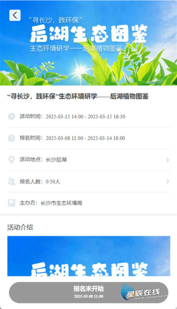 3.成为碳循长沙团友:活动页面蹲点报名,靠手速抢团团活动。(报名时间将提前在“长沙生态环境”微信公众号发布)