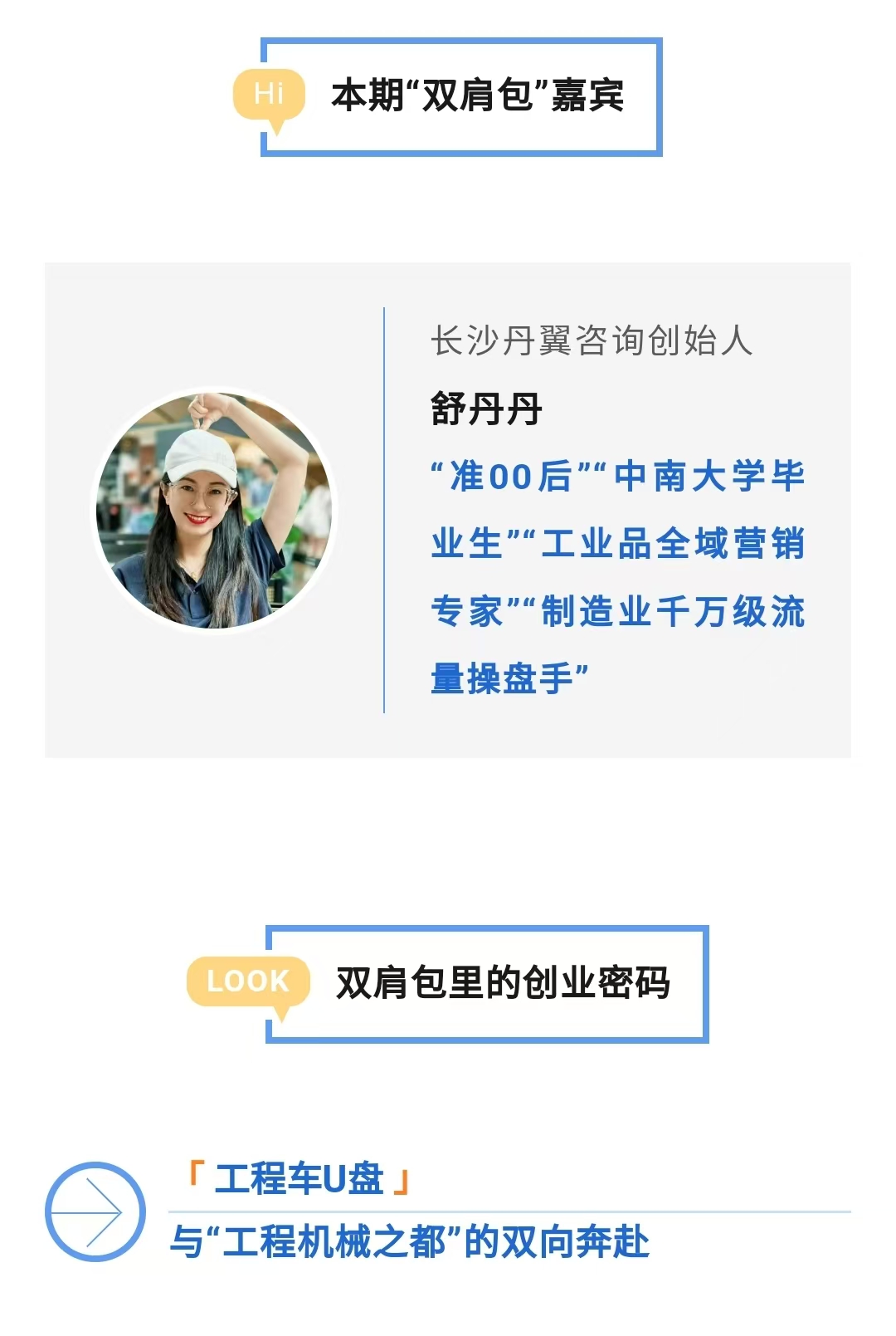 当舒丹丹从包里取出一个工程车造型的U盘时,小布感受到一种反差——这位1999年出生的姑娘,谈起工程机械却头头是道、兴致勃勃。“这是三一送的纪念品。”多年前,她曾专访三一重卡董事长梁林河,彼时埋下的种子,如今已悄然成长,将她的创业轨迹与制造业紧紧相连。
