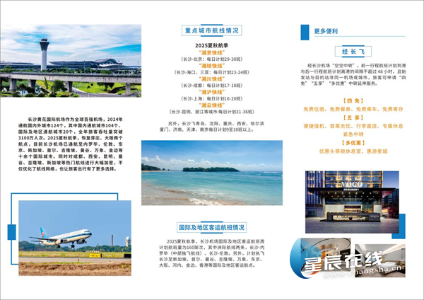 会上,长沙机场以“碧海蓝天经长湘见”为主题,生动介绍了从烟台这座碧海蓝天之城,到长沙这座烟火魅力之都的便捷航线,重点推介夏航季航班情况以及“经长飞”“空铁联运”“优享出入境”“优享接送机”等配套的航旅和定制化服务产品。在航空产品展示区,长沙机场以“乐享经长飞”为主题,精心布置“经长飞烟台行”产品宣传册、定制宣传展板等一系列富有长沙特色的展品,将湖南的风土人情展现得淋漓尽致。