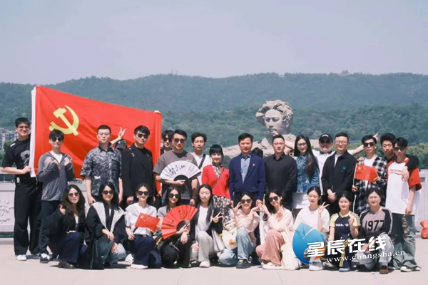 (演出前夕,音乐剧《南孔》剧组和浙江歌舞剧院党员来到橘子洲头,集体朗诵毛泽东的词作《沁园春·长沙》。图片均由通讯员 提供)