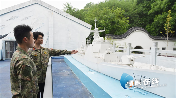 (退役大学生参观海军长沙舰模型。图片均为 通讯员 提供)