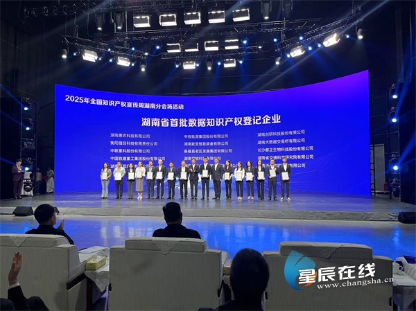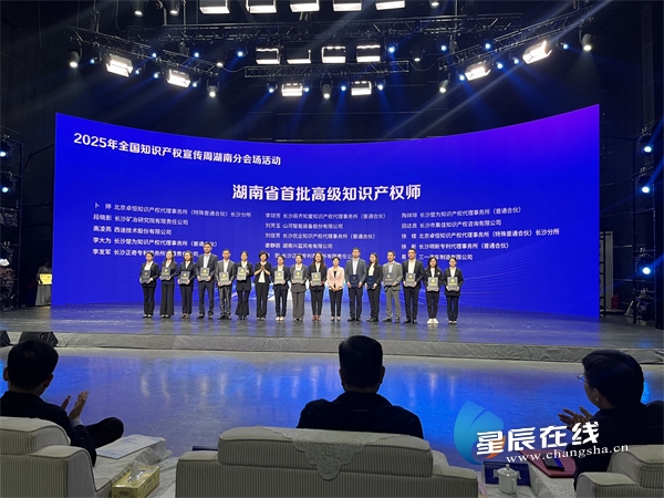 星辰在线4月23日讯(星辰全媒体记者 彭穗)4月23日上午,2025年全国知识产权宣传周湖南分会场活动启动仪式在长沙举行。活动现场发布了“2024年湖南省知识产权保护典型案例”和“2024年长沙市知识产权保护典型案例”,为15家企业颁发湖南省首批数据知识产权登记证书,为获得高级知识产权师职称的15名个人颁发证书,为首批科研机构知识产权中心授牌。