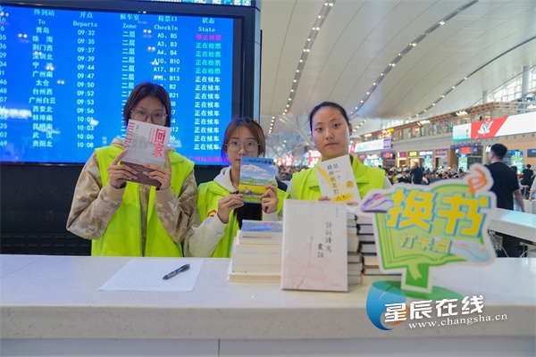 星辰在线4月23日讯(星辰全媒体记者 郭凤湘 通讯员 盛天昱)今年4月23日是第30个“”世界读书日。当天,长沙南站依托站内“雷锋书屋”免费阅读示范点举办了“书香长南我最喜爱的好书”世界读书日系列主题活动。在“湘遇长南雷锋服务站”换书打卡点,前来参加活动的阅读爱好者络绎不绝。