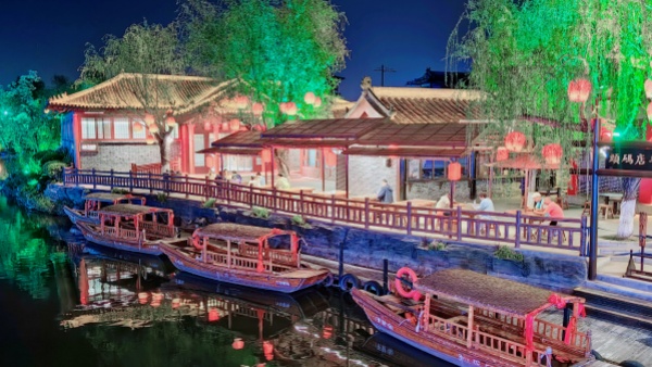 踏入园中,仿佛一脚迈进了千年前的繁华汴京。园内建筑风格古朴典雅,亭台楼阁、水榭桥梁错落有致,复刻画中的街景市貌。漫步其间,能看到身着宋代服饰的商贩、行人穿梭往来,叫卖声、谈笑声交织在一起,让人真切感受到宋代市井生活的热闹与烟火气。