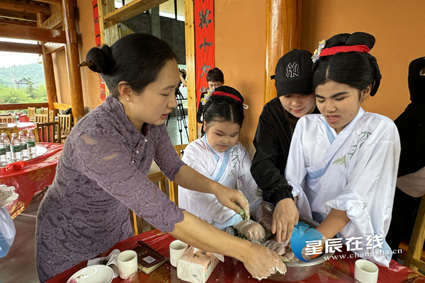 (“触摸书香・听见乡村”主题活动,视障学生亲手体验艾叶粑粑的制作过程。)