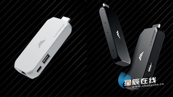 (马栏山实验室研发的超高清插入式微型机顶盒,共有黑白两个颜色。)