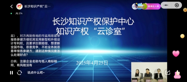 星辰在线4月28日讯(通讯员 曾仿月)在全国知识产权宣传周期间,长沙知识产权保护中心于4月25日举办知识产权“云诊室”线上服务活动,此次活动吸引了280余家企业代表在线参与。通过“政策解读+专家答疑+互动交流”的创新模式,为企业提供一站式知识产权解决方案。