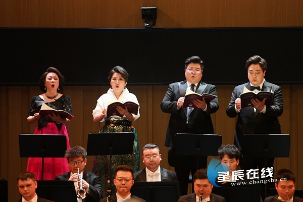 (歌唱家张立萍、刘倪汝、许洋、杨熠及长沙交响乐团歌剧中心合唱团。)