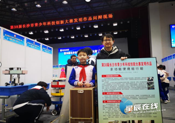 (马隐川在第3长沙市青少年科技创新大赛现场。)