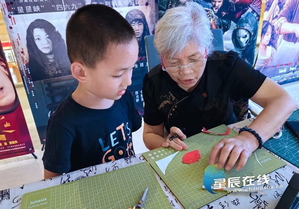 (小游客在影院非遗体验区打卡。以上图片均由星辰全媒体记者 龙莉 摄)
