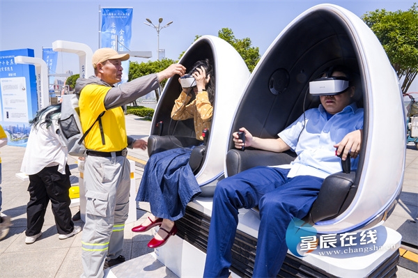 (活动现场设置的VR地震洪涝体验区。长沙市应急管理局供图)