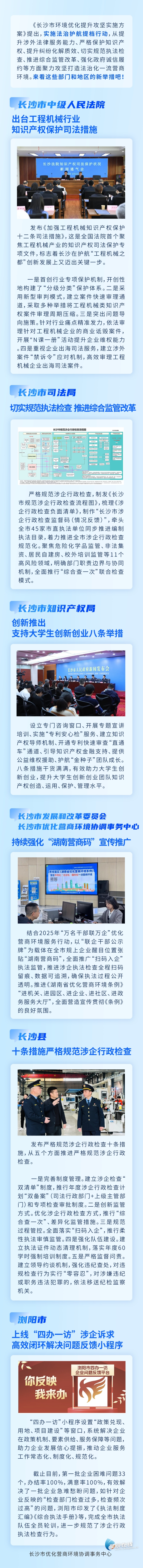 《长沙市环境优化提升攻坚实施方案》提出,实施法治护航提档行动,从提升涉外法律服务能力、严格保护知识产权、提升纠纷化解质效、切实规范执法检查、推进综合监管改革、强化政府诚信履约等方面聚力攻坚打造法治化一流营商环境。来看这些部门和地区的新举措吧!