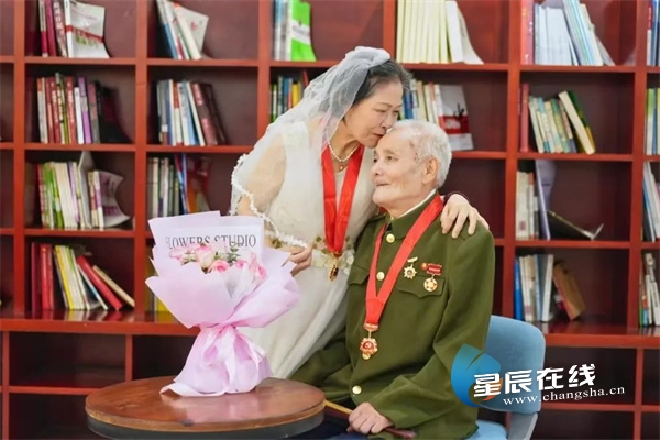 80多岁的退役军人龙爹爹有个心愿:和老伴拍婚纱照。社区工作人员得知后,在活动室布置临时摄影棚,帮他和其他10对婚龄超50年的退役军人夫妻圆梦。