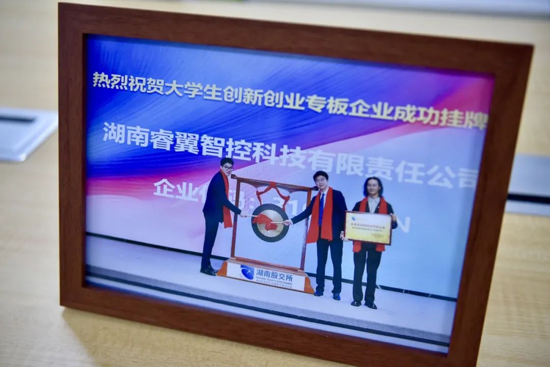 4月17日,首批16家大学生创新创业企业在湖南股权交易所挂牌,湖南睿翼智控科技有限责任公司(以下简称“睿翼智控”)位列其中,由创始人吴睿恩代表团队参与开板敲锣仪式。