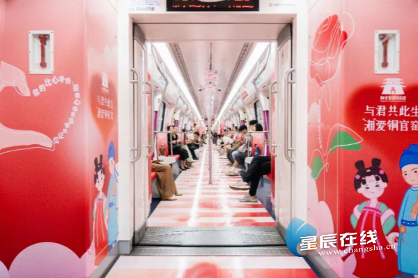 长沙地铁4号线变装爱情主题婚车,8对新人从溁湾镇站出发,搭乘“开往幸福的列车”,一路驶向铜官窑国风乐园景区,完成一场融合现代与传统的中式集体婚礼。步入这列“地铁花轿”,新人照片、新婚祝福语、系列“520”主题打卡点,每节车厢都是一间“移动婚礼现场”,承载的不仅是新人,还有这座城市对于爱的祝福与记忆。