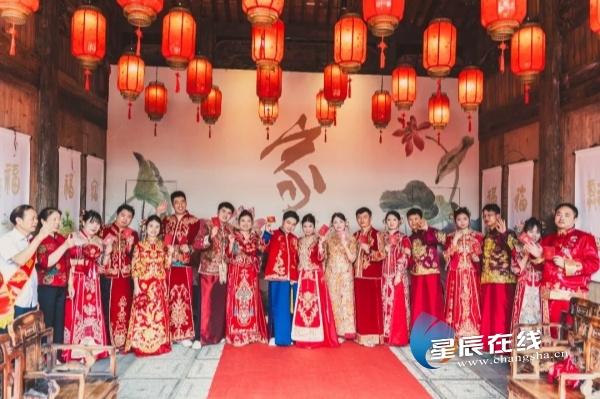 (新人们在铜官窑君生楼结婚登记点完成婚姻登记。图片由 长沙地铁 提供)