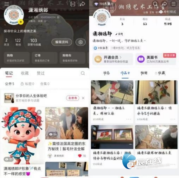 (靖港湘绣“二创”传播账号截图。以上图片由通讯员提供)