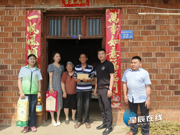 在长沙县泉塘街道星悦社区,道德模范慰问组带着精心准备的爱心物资,来到左宗明家中探望慰问。左宗明多年前因工伤致右手三级残疾,现与患病的老伴一同居住,生活十分困难,慰问组鼓励他们积极面对生活;同时,叮嘱随行社区人员,要时刻把残疾人家庭的冷暖安危放在心上,多走访、常看望,主动给予关心照顾。