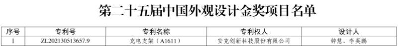 星辰在线6月6日讯(通讯员 李晟)近日,国家知识产权局公布第二十五届中国专利奖获奖名单,长沙共有12项专利获奖。其中,安克创新科技股份有限公司的“充电支架(A1611)”专利项目获得中国外观设计金奖;湖南卫导信息科技有限公司的“真实环境导航多径实时仿真方法、装置、介质及电子设备”,湖南邦普循环科技有限公司和湖南邦普汽车循环有限公司的“一种动力电池的无氧裂解方法”,国防科技大学的“一种基于双向扩频测距的光纤时间频率传递方法、装置及系统”等3项专利获得中国专利银奖。此外,长沙市还获得专利优秀奖8项。