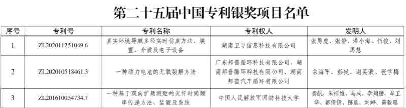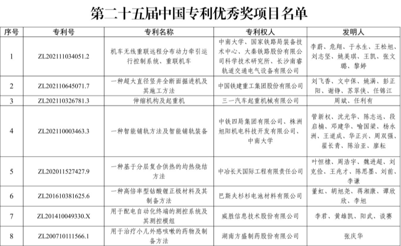第二十五届中国专利奖公布 长沙喜获1金3银