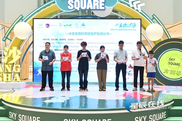活动伊始,湖南生态文明公益宣讲团成员、资深生态导师刘科为现场观众带来了一场生动的“鱼课堂”,带领大家走进奇妙的鱼类世界,普及生态保护知识。随后,亲子家庭、青年志愿者及湖南“河小青”代表共同宣读了《水生生物科学放生倡议书》,呼吁公众遵循科学放流原则,杜绝盲目放生,保护水域生态环境。