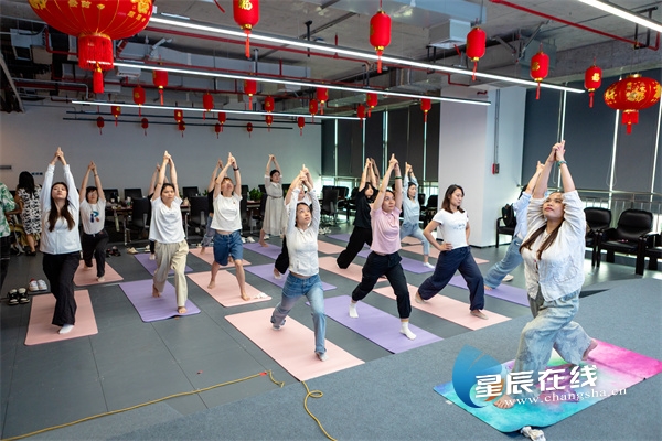 (通过瑜伽放松身心。图片均由 星辰全媒体记者 张寅宇 摄)