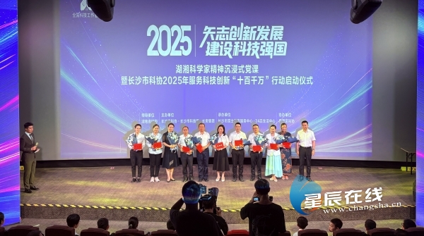 星辰在线6月14日讯(星辰全媒体记者 孙烨)6月13日,以“矢志创新发展 建设科技强国”为主题的湖湘科学家精神沉浸式党课暨长沙市科协2025年服务科技创新“十百千万”行动启动仪式在长沙启幕,专家、科技工作者代表齐聚一堂,共同见证长沙市科协以“十百千万”行动为笔,在科技创新画卷上书写的浓墨重彩。