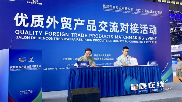 (优质外贸产品交流对接活动上,星通国际与加纳-中国经济与投资有限公司正式签署协议。图为 星辰全媒体记者 郭凤湘 摄)