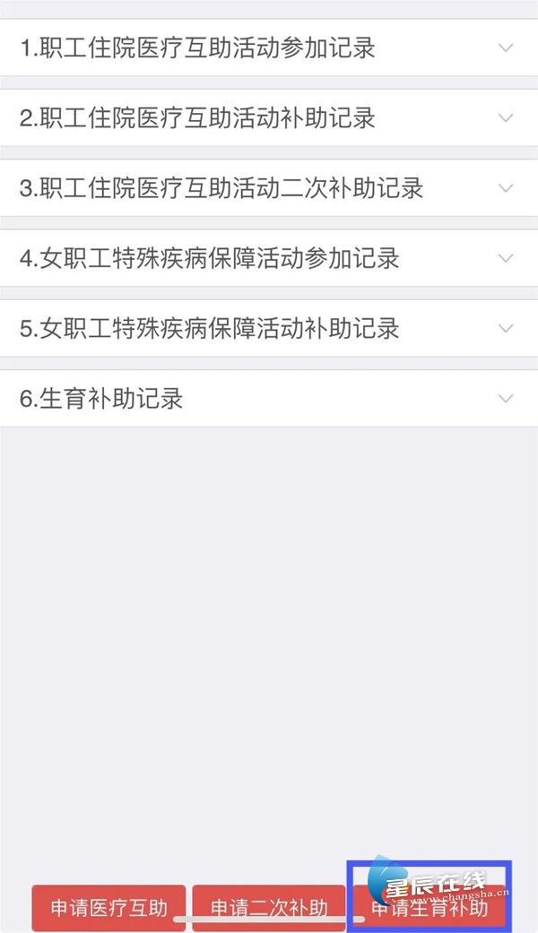 参加了长沙市2024年度在职职工医疗(住院)互助项目的在职职工即可在“申请医疗互助补助”“申请生育补助”页面下方入口提交材料申请。
