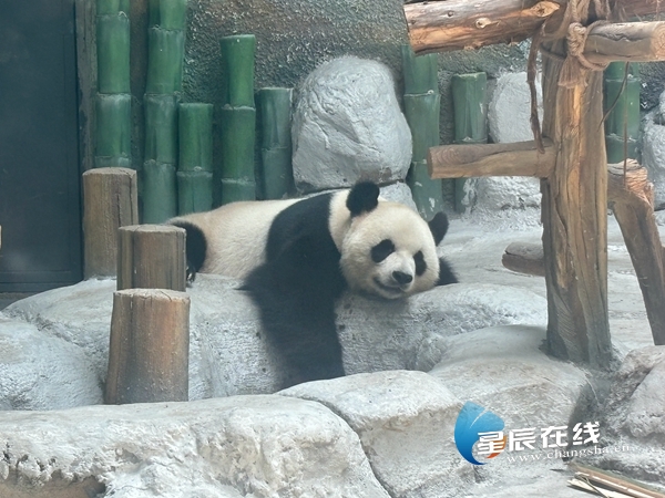 (“熊猫萌态”已成为岳阳又一张亮丽的旅游观光金名片。图片由星辰全媒体记者 文春燕 摄。)