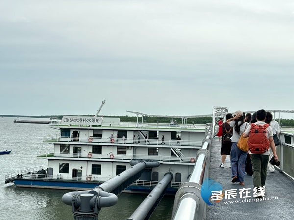 (采访团走进洪水港取水泵船参观。星辰全媒体记者 文春燕 摄)