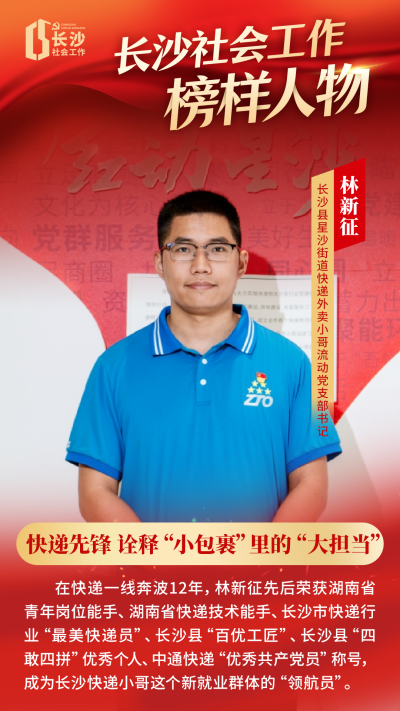 2023年,林新征获评长沙县“四敢四拼”好党员。这位被誉为“最美快递小哥”的党支部书记,积极为行业发声,多次呼吁社会各界关注快递员权益,推动工会“红色之家”服务站落地,让“小哥”们幸福感、获得感不断提升。