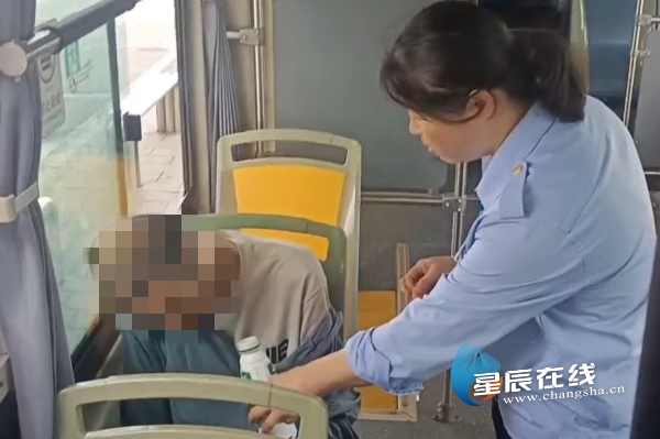 (胡利萍帮助乘客喝下饮料缓解症状。长沙公交供图)