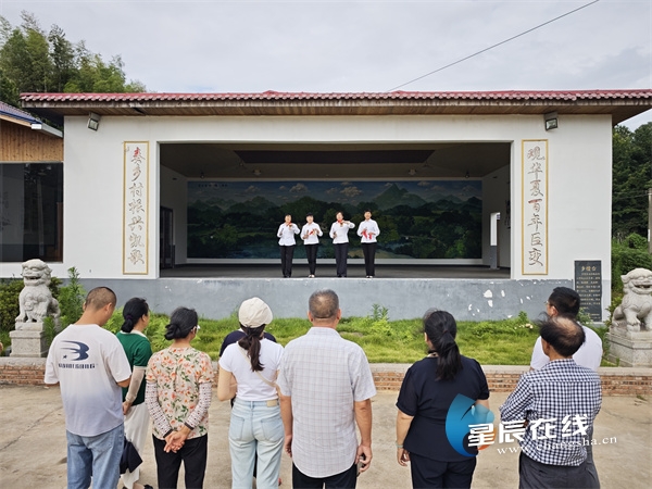 (村民在五福村石上组乡情台前观看《移风易俗谱新篇》快板表演。除特殊标注,图片均由 星辰全媒体记者 周子豪 摄)