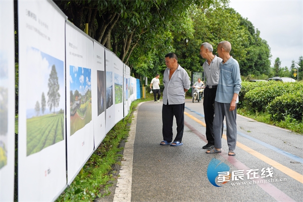 当天,“湖南村IP计划”系列活动之“我回村里办影展”活动同步启动,160幅体现乡村之美的摄影作品在金井三棵树茶园进行集中展示。据了解,活动前期,长沙市摄影家协会的摄影“大咖”走进金井镇的美丽乡村采风,他们深入田间地头,用镜头定格每一个动人瞬间。这些摄影作品内容丰富,镜头里老匠人揉捻金井绿茶时留下的指纹,那是传承千年的技艺;00后返乡青年搭建的智慧农业大棚,那是科技与乡村的灵动结合;乡村四季流转的烟火气,那是大美乡村的真实写照……观展嘉宾们漫步在光影中,细细品味一幅幅动人的乡村画卷。