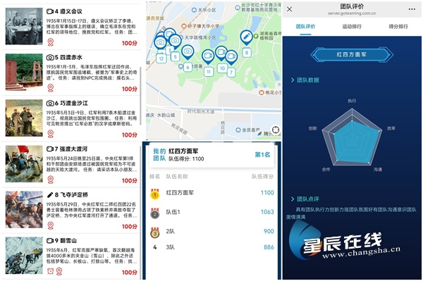 活动特别设计了多项亲子协作项目:在“湘江战役”模拟区,亲子以“两人三足”丈量信任;在“通道转兵”关卡中,家长检索红色语录、孩子诵读的视频通过终端凝结为亲子专属记忆;在“遵义会议”站点前,亲子团队身体摆出的五角星造型让“团结”有了具象温度;在“巧渡金沙江”任务里,枯枝拼出的“红军必胜”标语化为信仰图腾;在“过草地”路段上,亲子手挽手共唱《映山红》的歌声在林间流淌。