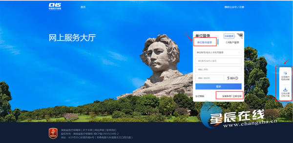 用人单位注册登录湖南省医疗保障单位网厅(网址:https://healthcare.hnybj.com.cn/hallunit/#/login)。