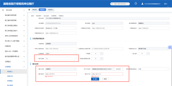 选择“经办业务——生育津贴——申报录入”,按要求录入相关信息(标*项为必填项),点击“提交”。