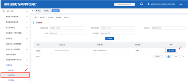 点击“申报打印”,选择打印相应申领表,按要求签名并加盖单位公章。