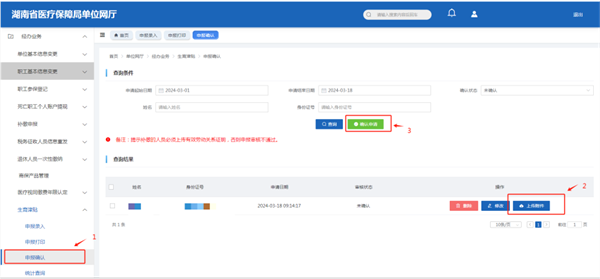 点击“申报确认”,勾选申报对象,点击“上传附件”(标*项为必传资料),按要求上传后点击“提交”。提交成功后勾选申报对象进行“确认申请”。如系统提示“校验不通过”,请根据提示原因排查处理或联系参保地医保经办窗口咨询办理。