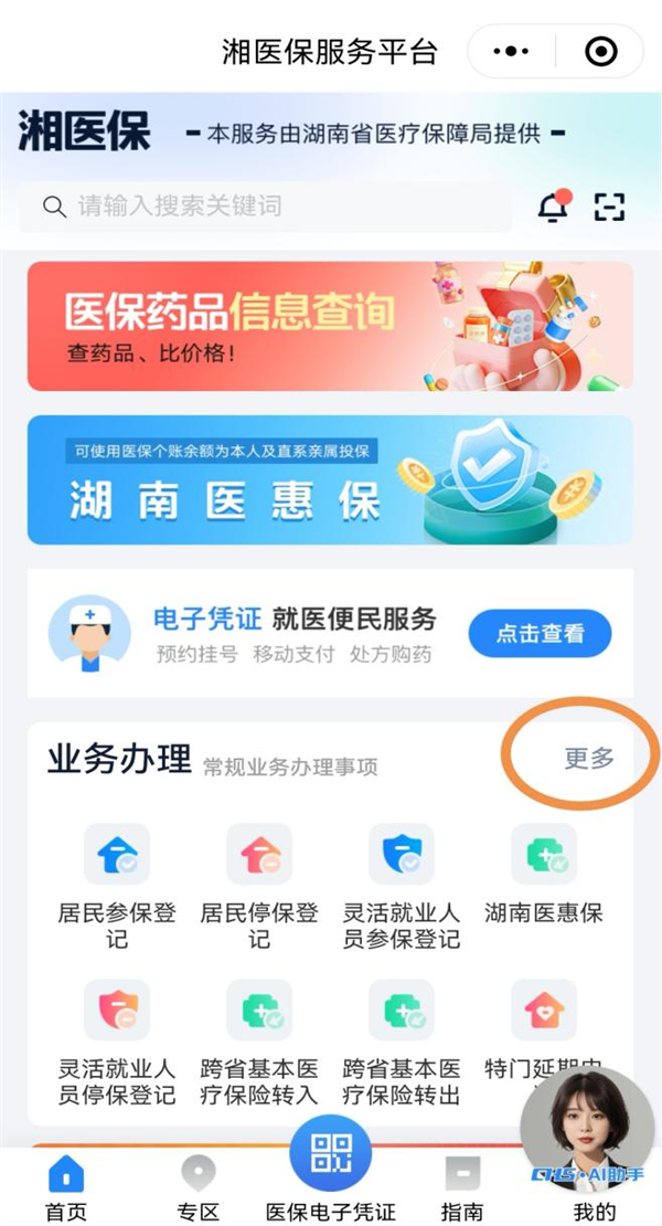 (二)个人查询途径:参保女职工本人登录“湘医保”APP或小程序,首页选择“业务办理——更多——查询业务——生育津贴业务进度查询”,可查询业务办理进度及相关信息。