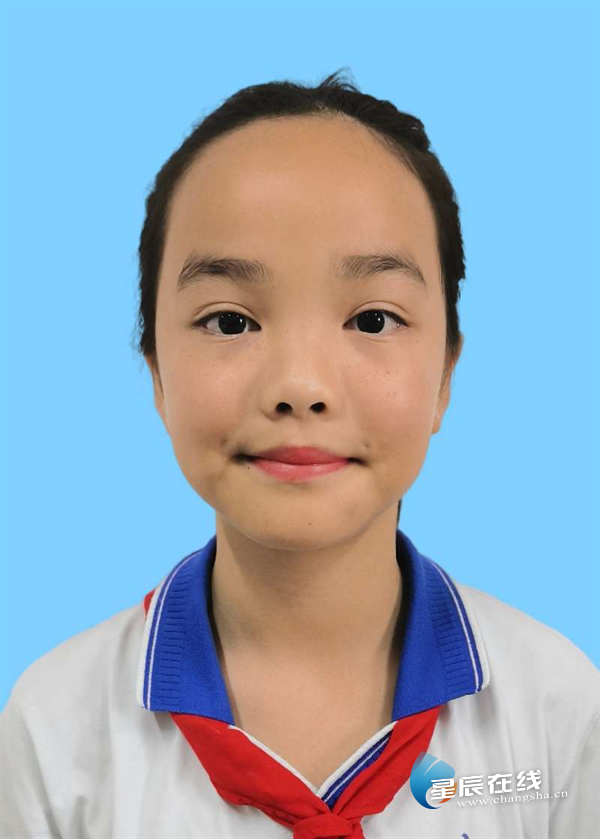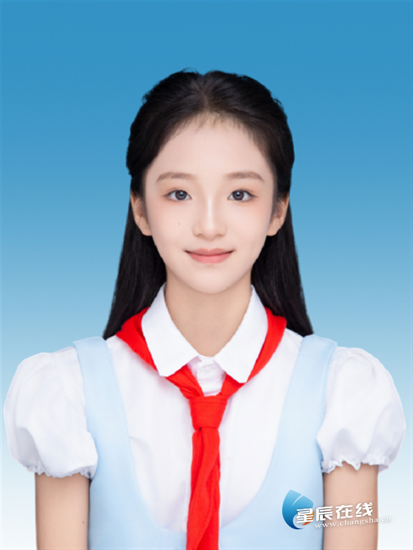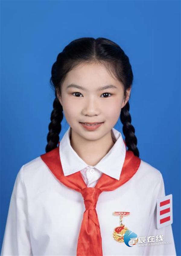 她是校大队委大队长、校广播站站长,12岁已担任8个红色教育基地讲解员,累计服务超400小时,进行了多次党史宣讲,创新录制“雷锋日记”云诵读视频获得广泛传播,2024年作为湖南省红领巾小记者采访俄罗斯工程院中国籍院士廖宏。她是“公益小先锋”,连续六年捐赠书籍衣物助山区儿童,留长发捐予白血病患儿,担任禁毒协会讲师,编创快板普及禁毒知识,曾获市“三好学生”、市“书香少年”等荣誉。