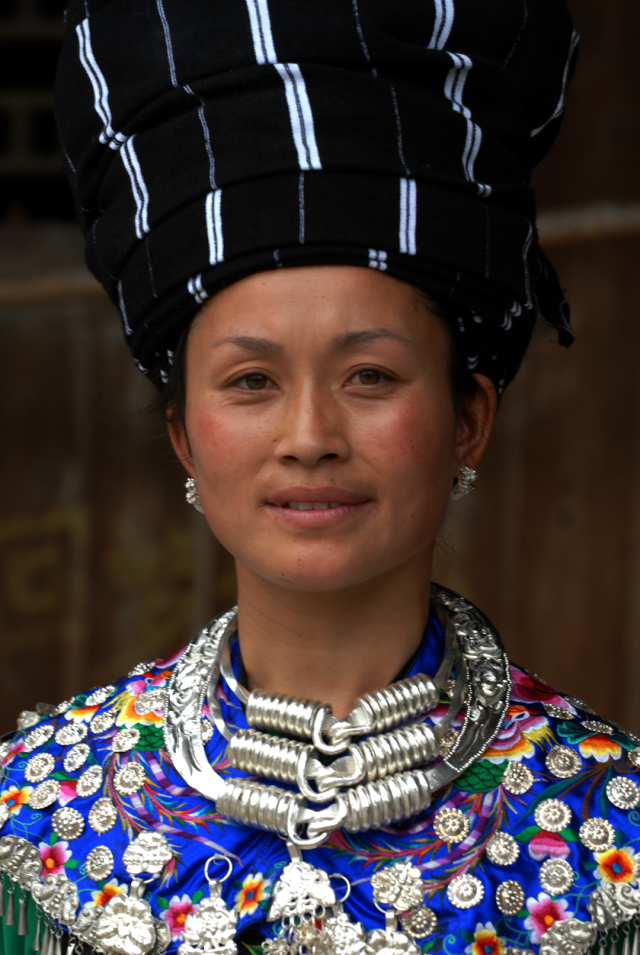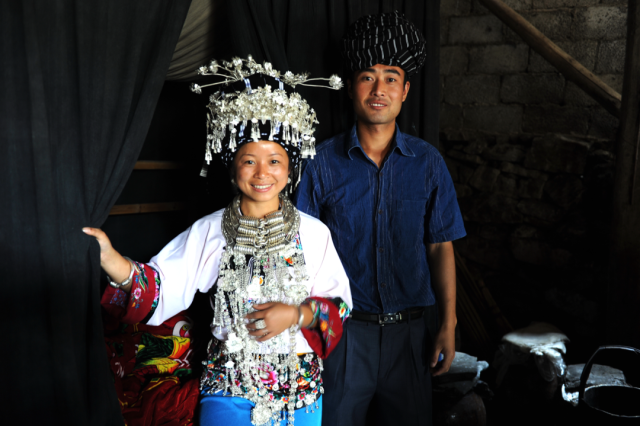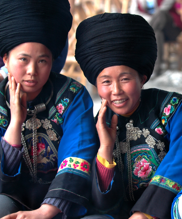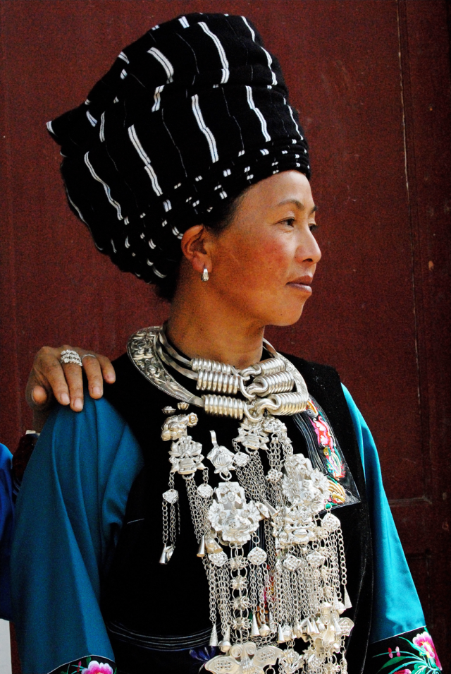 ◎ 2009年,凤凰腊尔山苗区,苗族妇女的节日盛装,男子头包人字帕。
