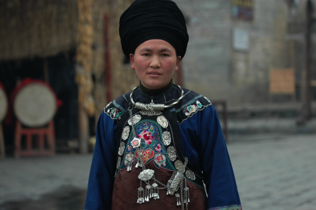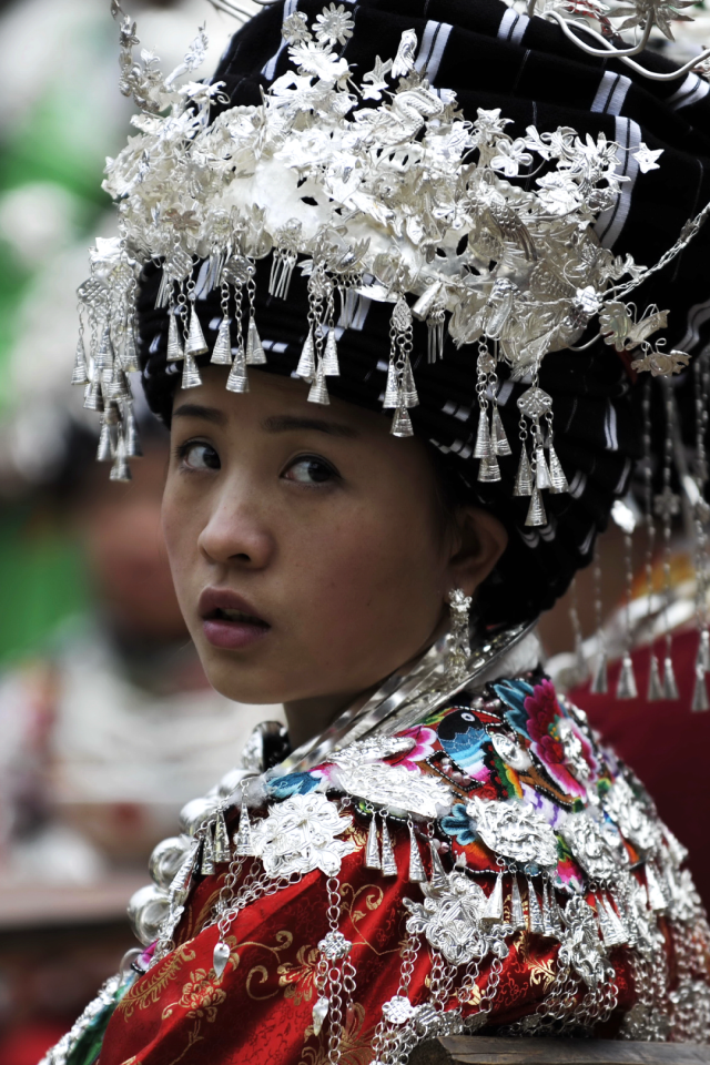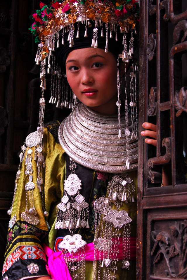 ◎ 2007年,凤凰早岗,着盛装的苗族姑娘。