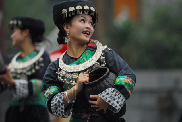 ◎ 2007年,吉首德夯,表演苗族舞蹈的姑娘。