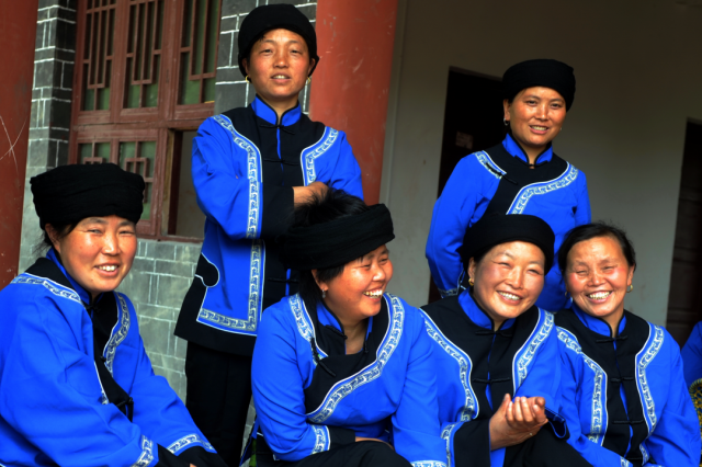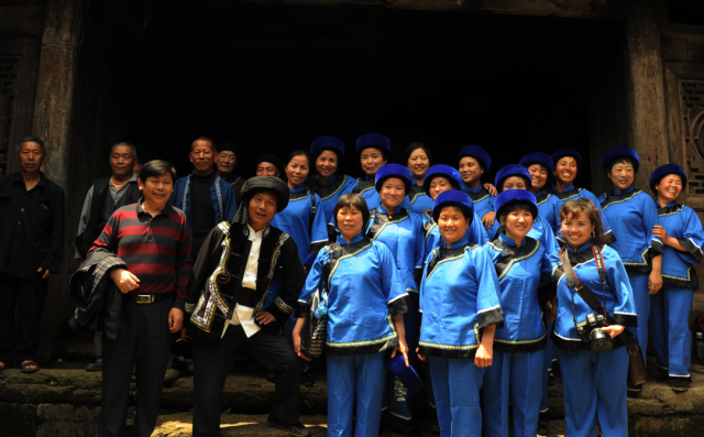 ◎ 2010年,龙山靛房,头缠青丝帕,身着传统土家族交领右衽大襟和对襟衣服饰的妇女,这是经改良后的土家族服饰。